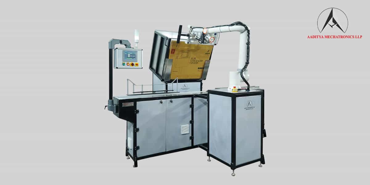 An advanced collaborative robot-based automation system called the In-Wall Tank (IWT) Packaging Machine by Aaditya Mechatronics LLP was created to precisely and safely handle the entire packaging process of IWT units. It reduces manual labor, speeds up cycle time, and guarantees constant quality in each pack.